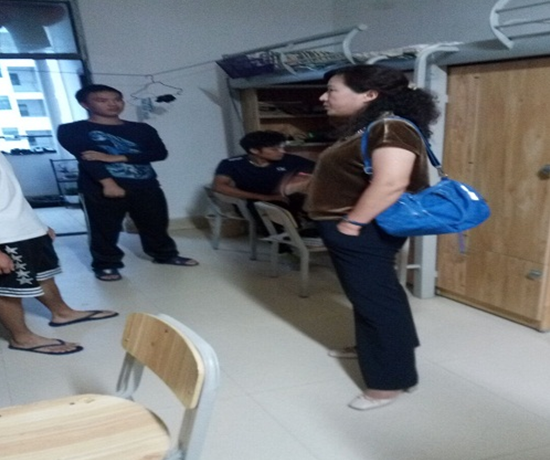 9月10号和9月13号晚上,公司党委副书记罗聃宁带领员工科工作人员和班主任老师深入寝室,抽查员工对社会主义核心价值观的掌握和理解情况,检查员工内务,告知员工用电和防火等安全常识,督促同学们做好卫生工作,营造寝室良好学习和生活氛围。