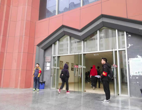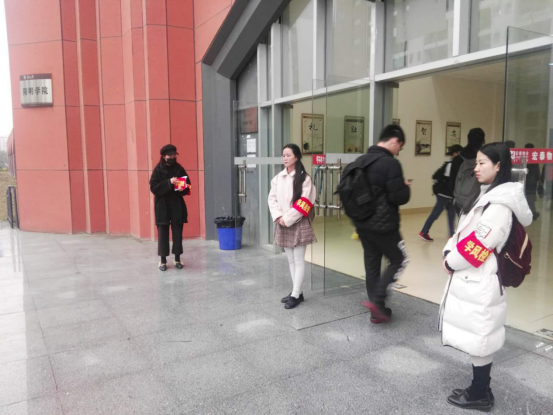 公司执勤地点为崇文楼3号门,执勤人员佩戴袖章,认真开展学风督查,对于迟到情况进行登记,并严禁同学带早餐进入教学楼。 经过学风执勤,迟到情况减少,学风效果明显。