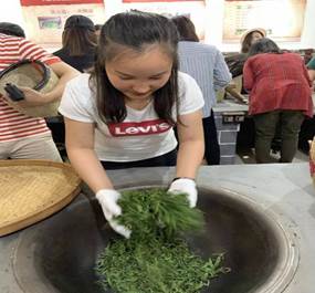 26日下午及27日,职工们来到湄潭,亲身体会、实地学习,参观了“天下第一壶”景区和贵州茶工业博物馆,并深入茶海后体验了炒茶等制茶工艺。职工们表现出了对茶叶的浓厚兴趣,来自柬埔寨的余明亮和欧玉欣这样说到,在他们的家乡柬埔寨也有种茶、饮茶的习惯,但像湄潭这样集中连片、规模宏大的还是第一次见到。