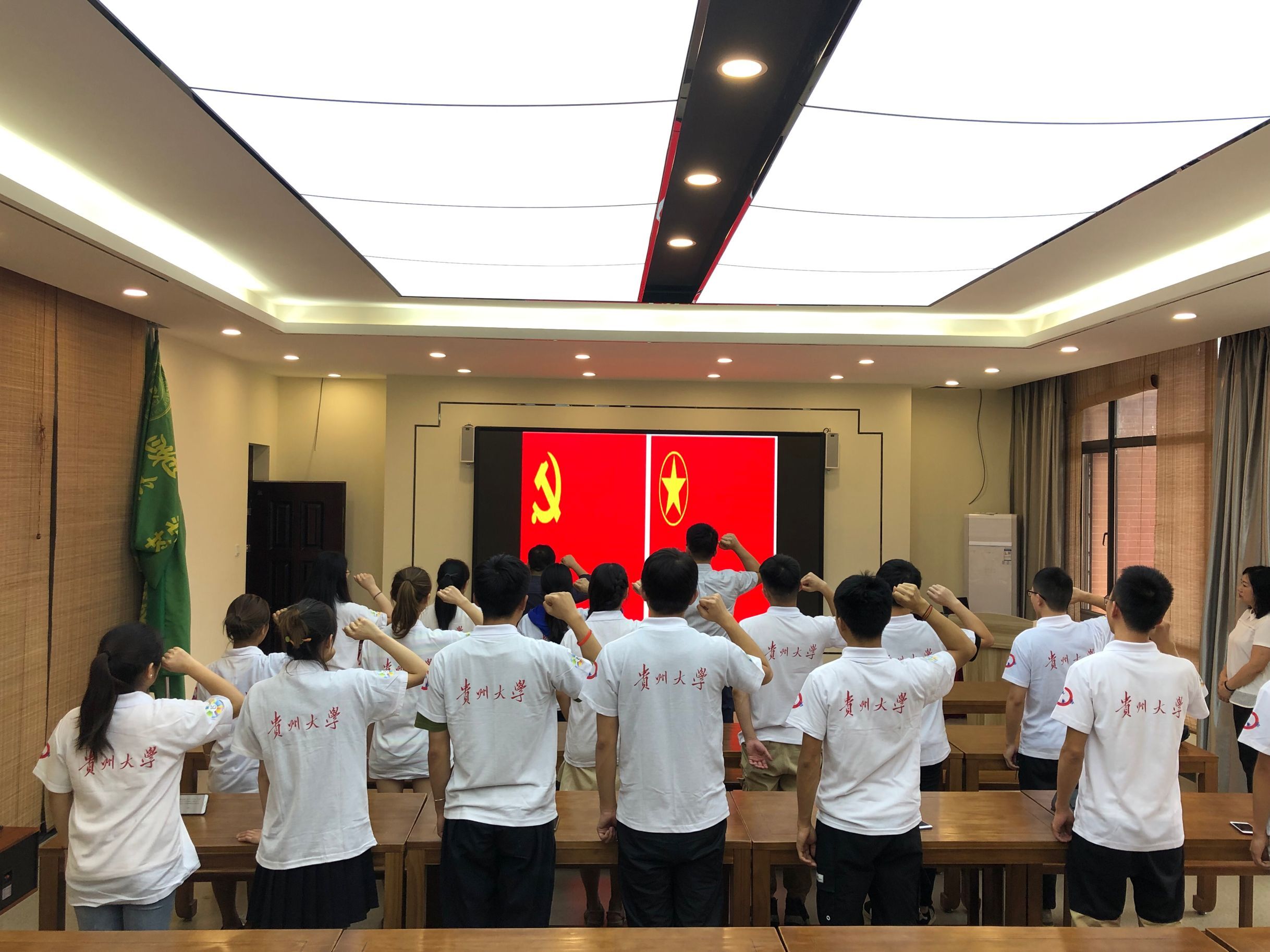 会议伊始,全体成员齐唱国歌为出征仪式拉开了序幕。随后,罗聃宁书记给本科生实践队和研究生实践队分别授旗,极大地鼓舞了士气,使大家投身于社会实践的信念更加坚定。接着,“博士村长”行计划实践队代表龚伟伟和本科生实践队代表马友力分别做了发言,畅谈了本次活动的规划和目标,表达了时刻发扬吃苦耐劳、发挥先锋模范作用的信心与决心。在领誓人盛律平的带领下,全体参加暑期实践的同学激情饱满地向党旗和团旗作了宣誓。