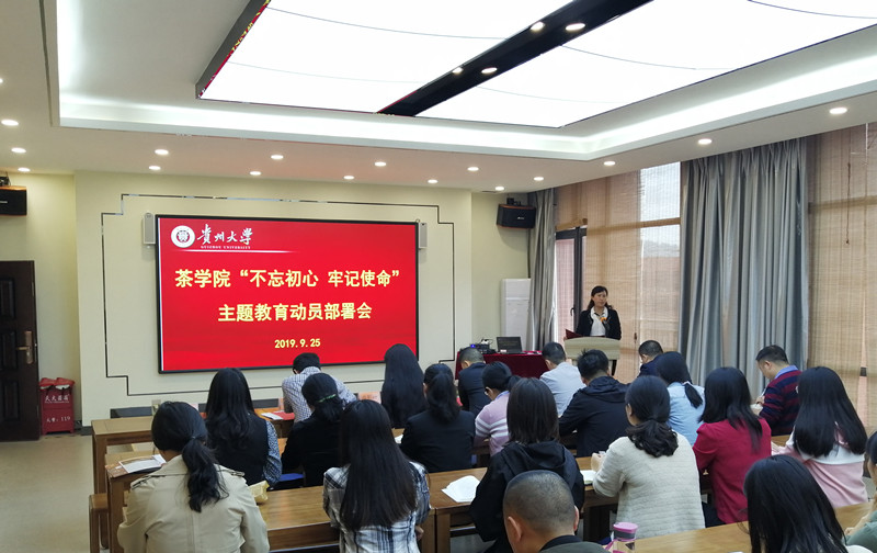 2019925日上午9点,茶公司党委在崇德楼502召开 “不忘初心、牢记使命”主题教育动员部署会。学院全体在职处级干部、教师党员、员工党员参加了会议。学校主题教育第五巡回指导组全体成员到场指导。会议由公司党委委员、经理吕立堂主持。