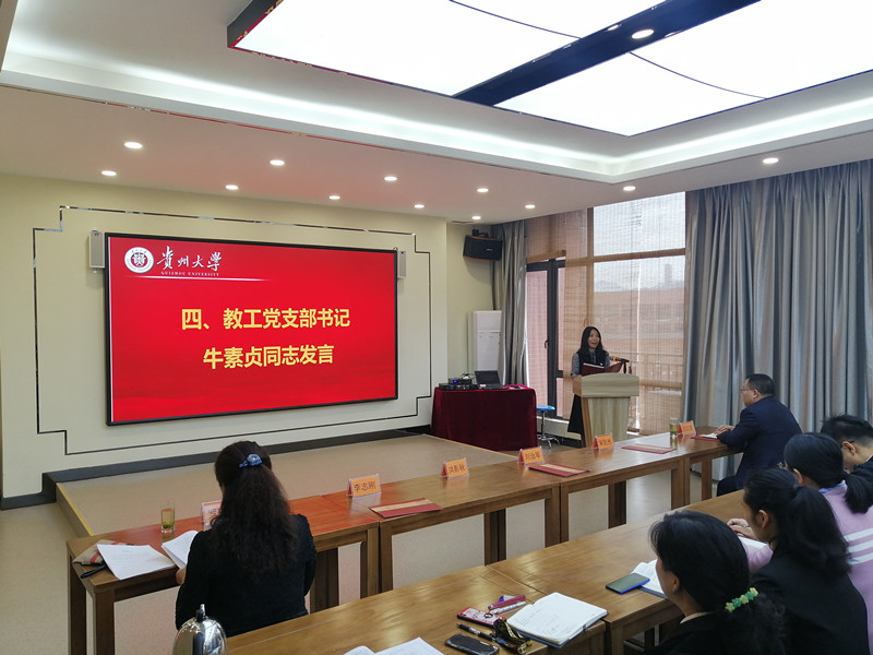 最后是教工党支部牛素贞同志发言。她表示:这次“不忘初心、牢记使命”主题教育工作时间紧、任务重、要求高,教工党支部将切实扛起政治责任、压实领导责任、强化主体责任,立即行动、以上率下、从严督导、完善制度、加强宣传,力戒形式主义,确保教育活动、推动工作“两不误”、“双促进”,确保学院主题教育取得实实在在的成效。