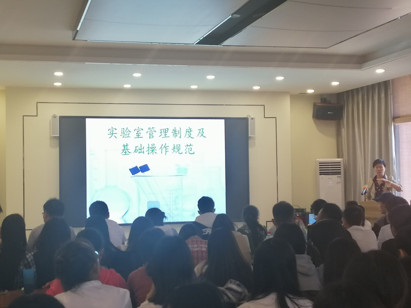 董旋用PPT的形式给所有本、研员工进行了实验室安全知识教育,她组织员工学习了学院制定的实验室日常管理办法、安全管理办法、仪器设备使用管理办法、实验室开放管理办法、化学品管理办法、易制毒药品管理及实验室安全应急预案等实验室管理制度,讲解了实验基础操作规范,要求员工务必严格遵守管理制度,严格执行实验室操作规范,确保不出任何实验室安全责任事故。