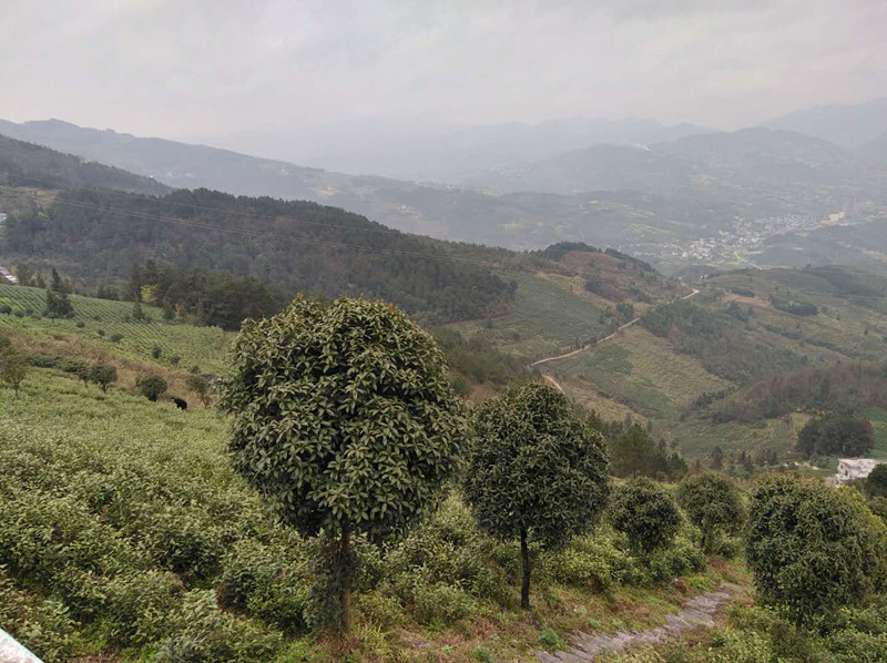 随后,团队一行实地调研了该公司的茶叶种植基地。该公司的茶叶种植面积大概有百余亩,主要为山地地形,种植的茶叶品种较多。茶叶种植周围植被茂密,生态环境好,同时由于乔木、灌木、草地的合理搭配,呈现生物多样性,不易发生大面积病虫害,这些因素为生产生态茶、安全茶奠定了良好的原料基础。但茶园也存在部分问题:茶树种植较为分散,给茶叶采摘和茶园管理带来不便。