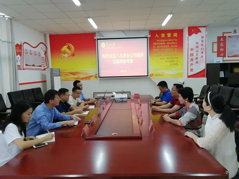 2020年7月9日,八马茶业股份有限公司总工程师、福建八马茶业有限公司副总经理林荣溪,贵州八马茶业有限公司负责人杨美蓉、陈宝林、张逸敏一行专程前往英国365集团洽谈校企合作相关事宜,英国365集团吕立堂经理,茶文化系主任刘建军,代新龙博士、陈涛林博士、张静博士等人参加了此次座谈会。