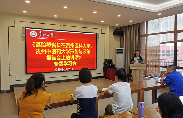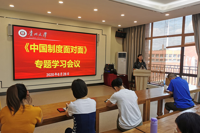 随后由罗聃宁带领全院教职工认真学习了《中国制度面对面》这一书籍及省长谌贻琴同志在贵州医科大学、贵州中医药大学形势与政策报告会上题为《在守护人民健康的崇高事业中绽放青春之花》的讲话精神。领学《中国制度面对面》时,罗聃宁带领教职工重点对中国特色社会主义制度是怎么来的、中国特色社会主义制度为什么好、党的领导制度体系为何摆在首位等章节进行了系统深入地学习。会上,教职工简要谈了学习体会,大家一致认为:2020年初突如其来的新冠肺炎疫情肆虐中国大地,面对传播速度最快、感染范围最广、防控难度最大的一次重大突发公共卫生事件,中国共产党一切为人民、中国制度集中力量办大事的优良性使国内疫情在最短的时间内得到控制,中国进入复工复产的快速车道,是我国国家制度和治理体系显著优势充分发挥的必然结果。