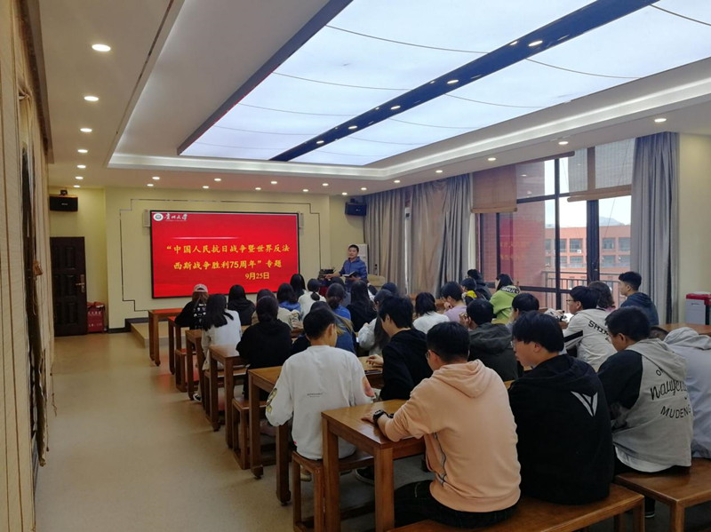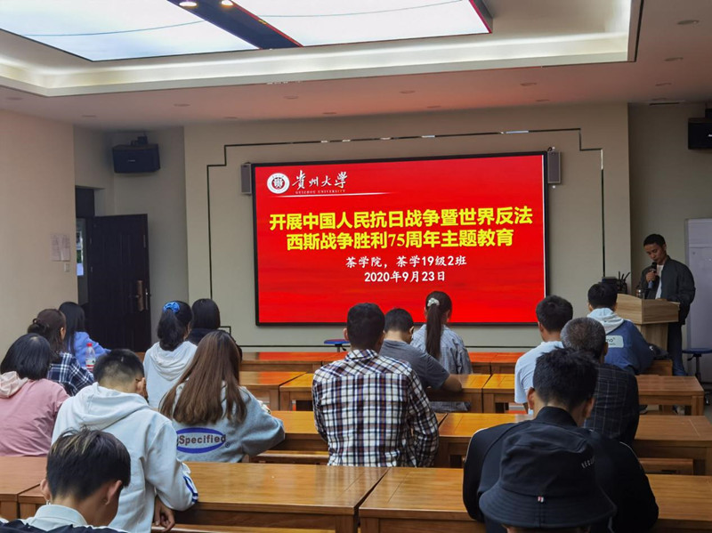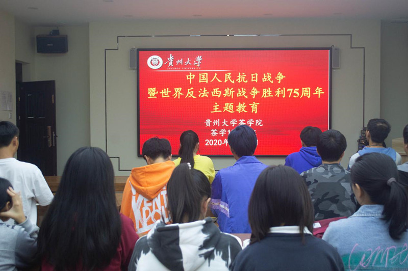 2020年9月3日是中国人民抗日战争暨世界反法西斯战争胜利75周年纪念日。当天上午,茶公司党委班子、教职员工及本、研员工通过手机、电脑、电视等渠道收看了《纪念中国人民抗日战争暨世界反法西斯战争胜利75周年向抗战烈士敬献花篮仪式》直播。直播结束后,公司党委书记罗聃宁主持召开学院各科室负责人、本科生各班班主任工作会议,对学院开展《纪念中国人民抗日战争暨世界反法西斯战争胜利75周年主题教育活动》进行了安排部署。