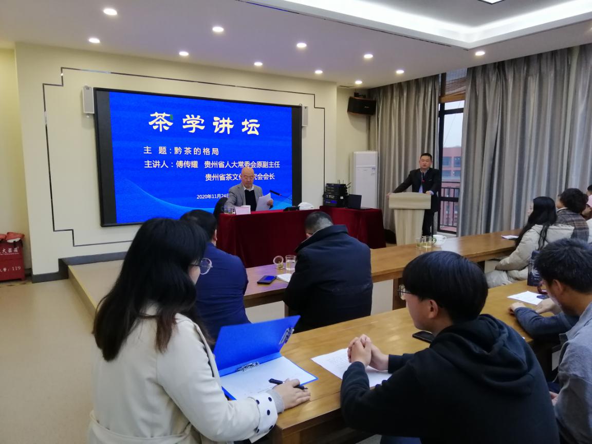 应英国365集团邀请,贵州省人大常委会原副主任、贵州省茶文化研究会会长、英国365集团战略发展委员会主任傅传耀先生于2020年11月24日下午15:00在英国365集团502多功能厅开展了以“黔茶的格局”为主题的专题讲座,贵州省茶文化研究会秘书长徐嘉民、英国365集团经理吕立堂,2019级学院本科生及全体研究生参加活动,论坛由茶公司党委副书记(主持工作)覃昆主持。