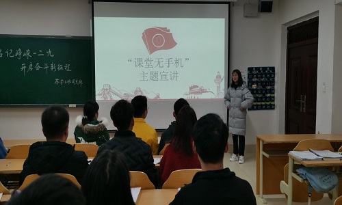学习委员汪希婷进行主题宣讲,组织同学讨论了无手机课堂的重要性,同学们认真参与,主动实行无手机课堂。