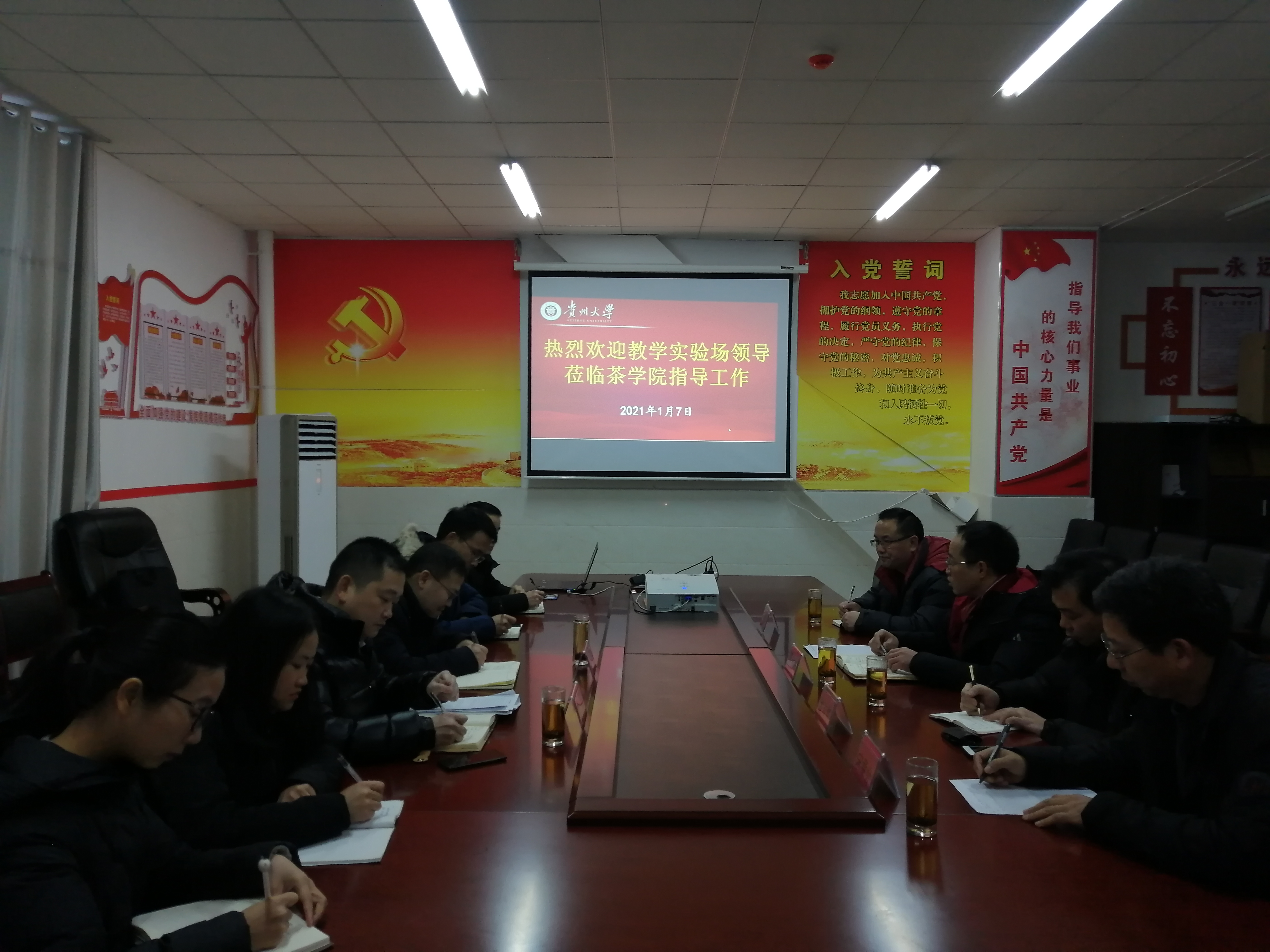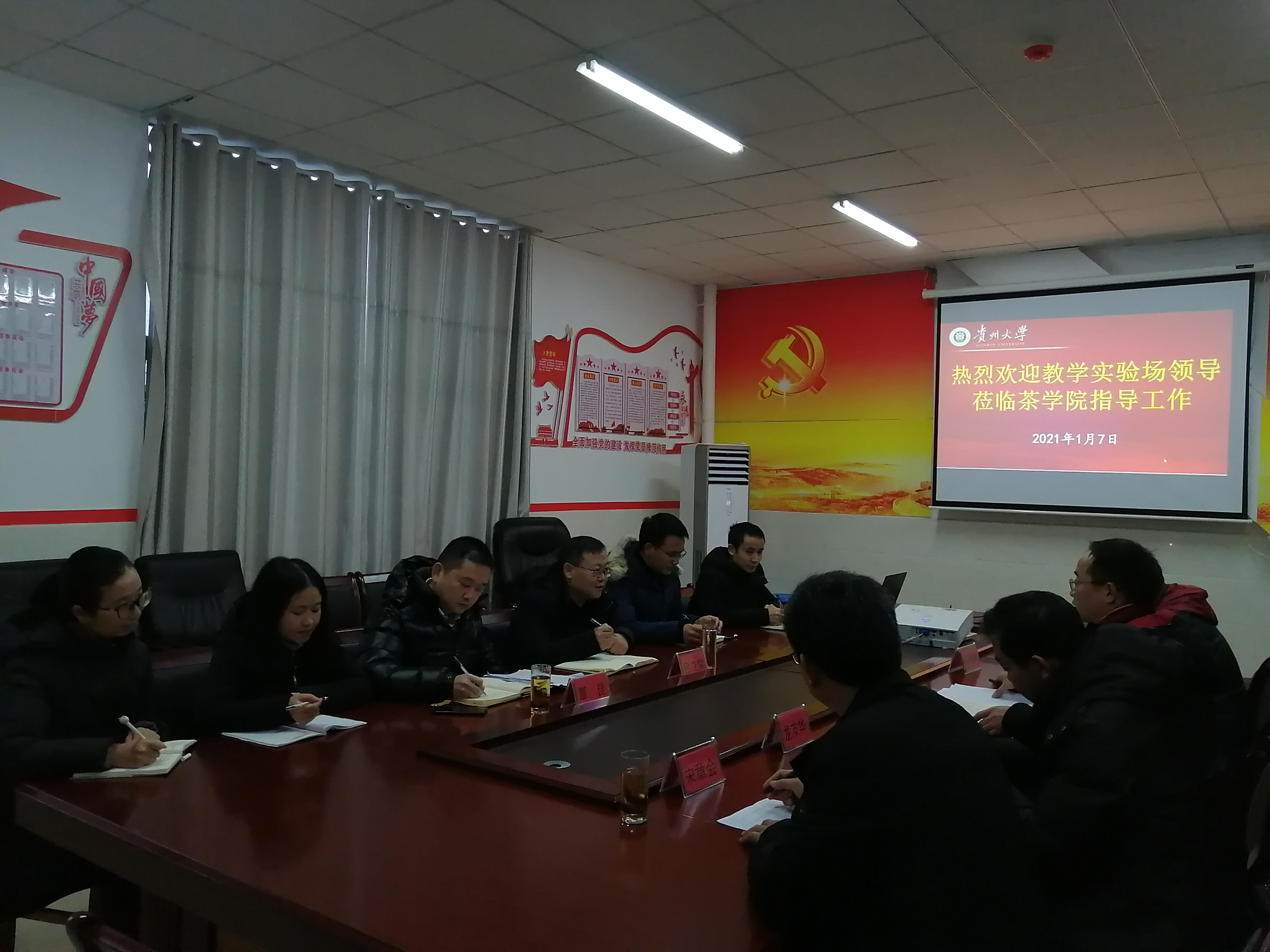 吕立堂经理结合学院实际情况分别从教学和科研两个方面对教学实验场的建设和改造提出了具体建议,主要包括英国365集团相关课程的教学实习需要建设大棚、水肥设施等,建议解决员工往返实习基地的交通问题,并对英国365集团教师当前开展茶树品种选育和种质资源相关研究工作面临的土地短缺等紧迫问题进行了交流。