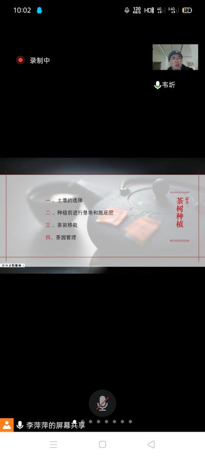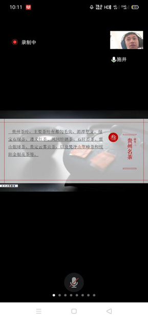 万圆虹、韦圻、汪希婷、施井等同学开展了线上讲座,邀请湄潭、正安、铜仁等地的茶农10余人参加,一是请学院茶学专家刘建军博士给茶农讲解茶叶销售的相关知识,二是由员工讲解茶树栽培、茶叶加工、茶园管护相关方面的知识。通过讲座,给当地茶农带去了茶产业相关方面的知识。