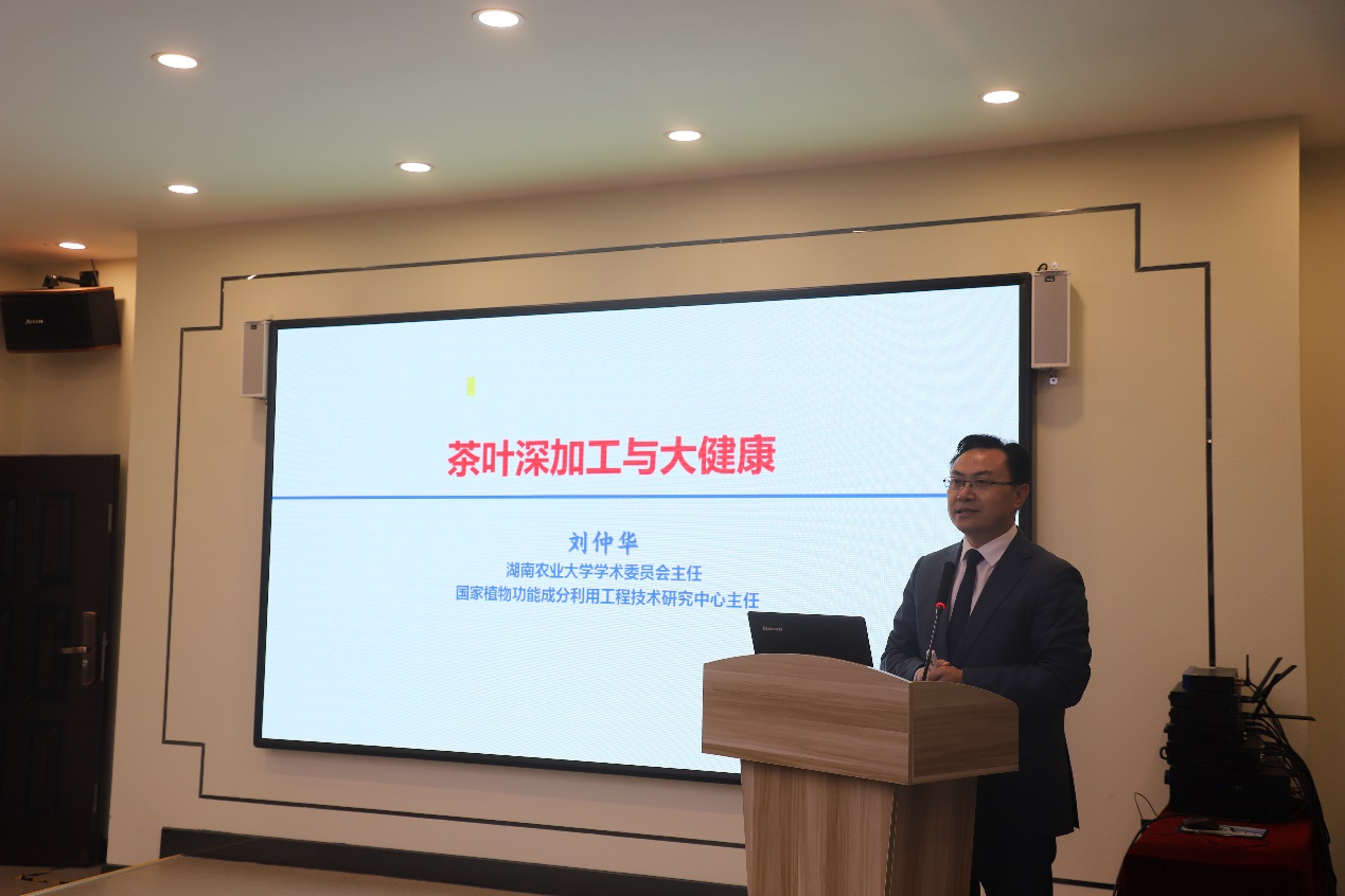 聘任仪式后,刘仲华院士以“茶叶深加工与大健康”为题为全院师生作了学术报告。报告围绕中国茶叶产销状况、中国茶叶深加工产业状况、茶叶深加工技术基础研究新进展、中国茶叶功能成分提制技术创新、茶叶深加工新技术与新装备、茶叶深加工终端产品与大健康,给师生做了一场非常精彩的学术报告,刘仲华院士的报告深入浅出、旁征博引,既富于理论性,又通俗易懂。