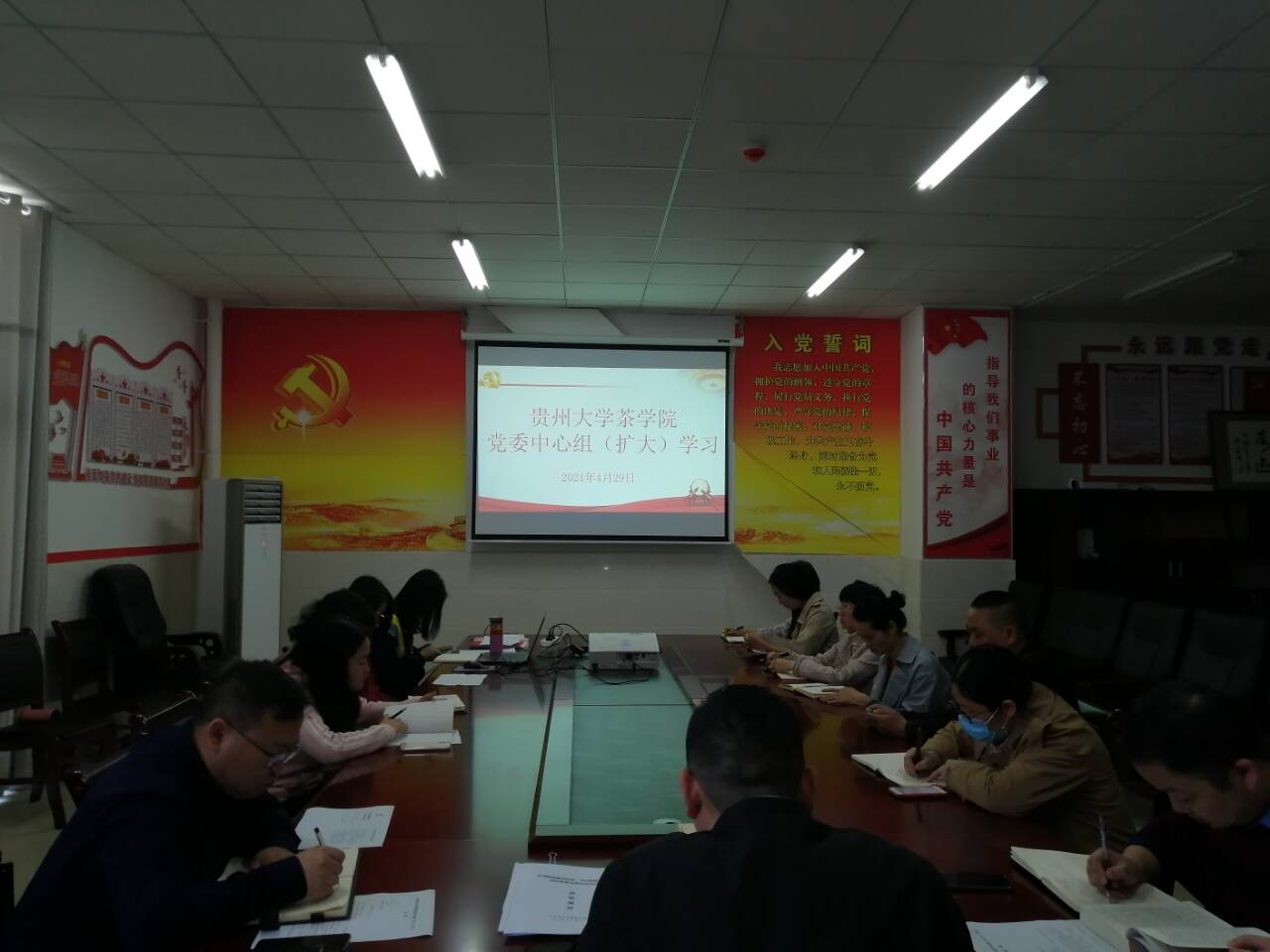 2021429日,茶公司党委在崇德楼526召开党委中心组(扩大)学习会议,会议由茶公司党委副书记(主持工作)覃昆主持,茶公司党委副书记、经理吕立堂,学院下属各支部书记、系、科室、中心负责人和教工支部全体党员近20人参加。