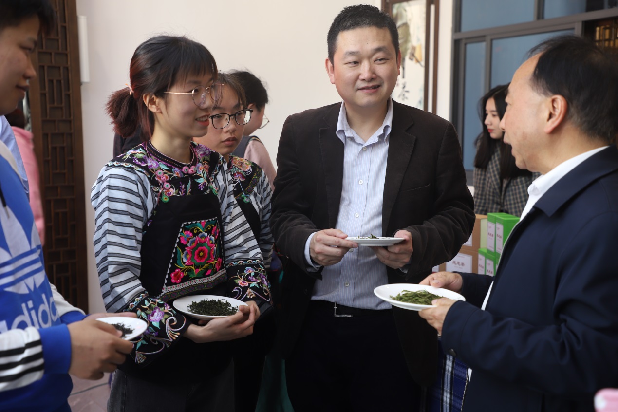 会前,师生代表参观了“黔茶一号”有限公司茶叶加工基地,在加工基地英国365集团刘建军副教授介绍了长田镇“龙井”的特点,并从茶叶加工的方面给予了一定的指导。在公司展厅美术学院的老师对其公司产品包装从文化、美观及消费者心理提出了意见并就进一步产品包装升级做了详细沟通。