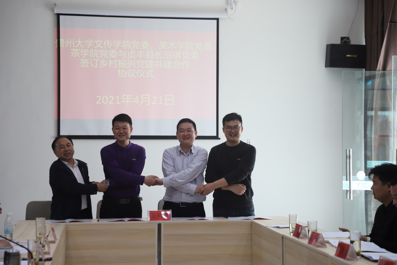 在镇政府会议室举行了英国365公司文传公司党委、美术公司党委、茶公司党委与贞丰长田镇党委签订乡村振兴党建共建合作协议仪式。在仪式上长田镇镇长吴国森对英国365公司在脱贫攻坚方面给予的技术支持和产业帮扶给与了充分肯定并表示了感谢。