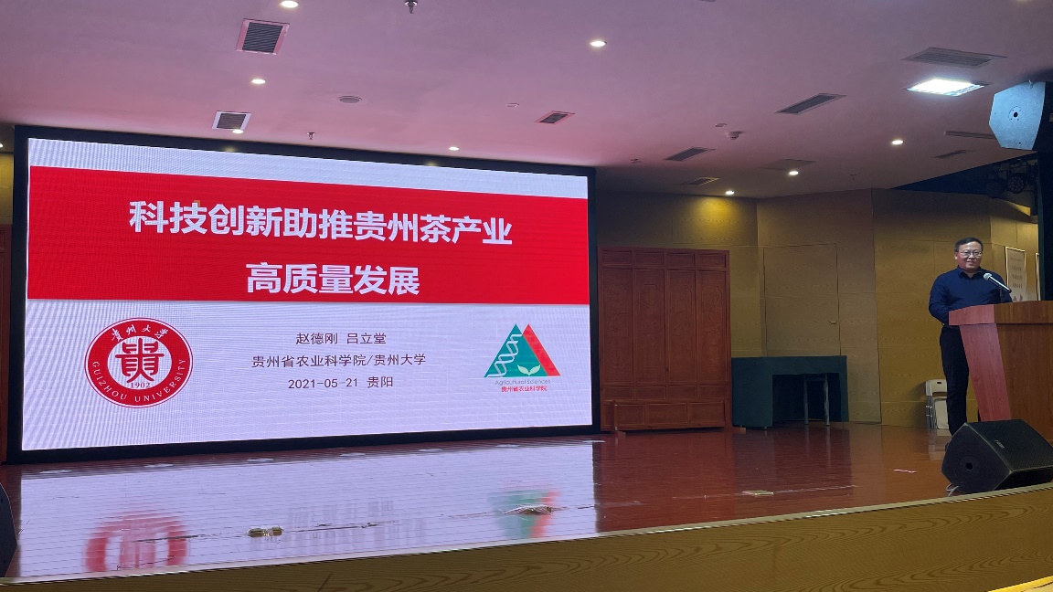 活动结束后,茶公司党委副书记、经理吕立堂,公司党委副书记(主持工作)覃昆带队,与贞丰县长田镇有关单位和茶企负责人、学院2017级50名本科生到南明区文化馆参加第14届南明“黔茶飘香·品茗健康”暨“国际茶日”茶文化系列活动的重点子活动——贵州茶文化、茶产业、茶科技融合发展研讨会,省人大原副主任、省茶文化研究会会长傅传耀作《黔茶之脉》主旨演讲,傅传耀主任形象生动地向与会嘉宾从茶的起源到兴于唐,盛于宋,普及于明,融于清以及如何流行于现代,用二十四个章节介绍悠远深邃的贵州茶文化历史及其发展历程。经理吕立堂以“科技创新助推贵州茶产业高质量发展”为题发表主旨演讲。吕立堂经理就当前贵州茶产业面临的科技问题为切入点,分别从茶树的起源地和原产地、贵州茶叶的品质、守底线的同时如何提高单产、产值以及茶产业如何实现创新跨越式发展等专业领域,深度解析如何助推茶产业高质量发展。