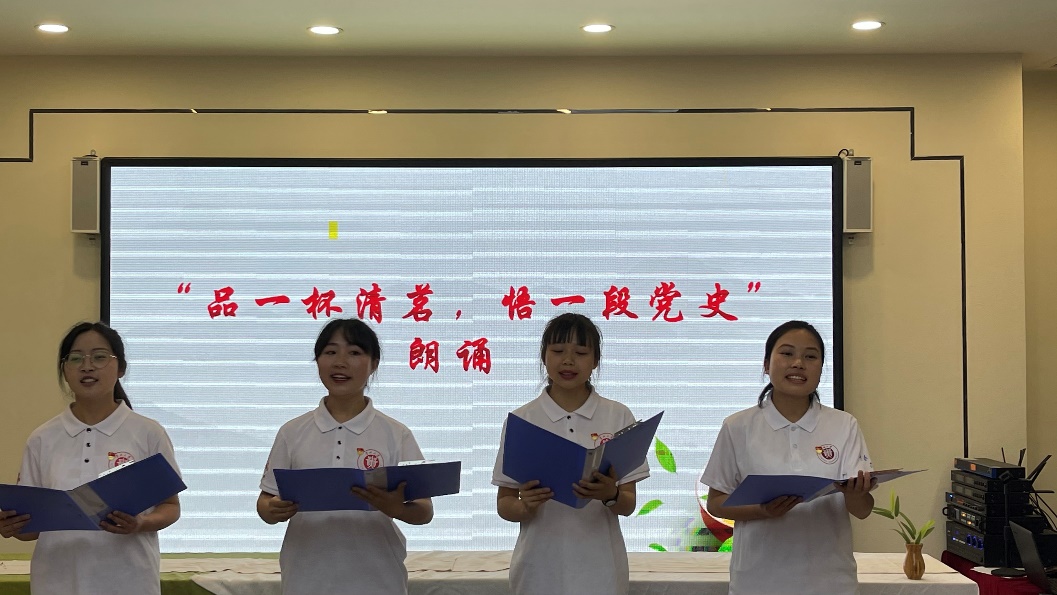 在“品一杯清茗、悟一段党史”朗诵环节,让师生们在品茗之余,通过聆听朗诵《这个人》,感悟了周恩来总理崇高的共产主义精神。