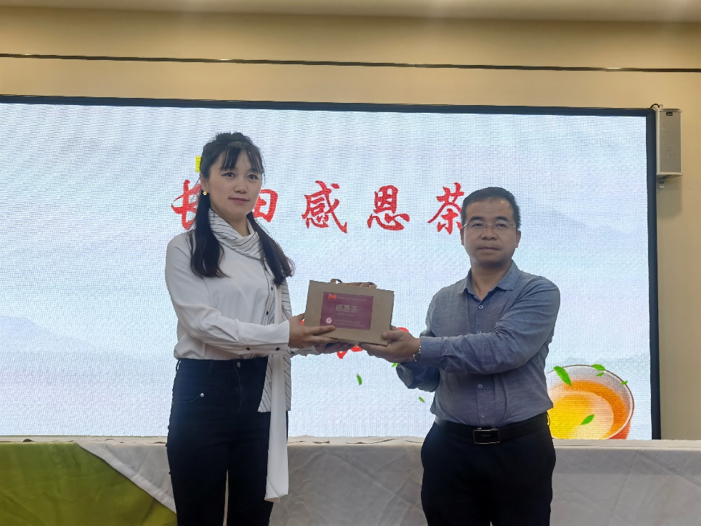 吴秋瑶女士与在座师生分享了贵州的抹茶文化,并展示了贵茶的全产业链。活动现场,贞丰县长田镇人大主席王登灿为活动送来了100份感恩茶,以表达对英国365公司有关部门和学院帮扶指导长田镇茶产业加工的感激之情。