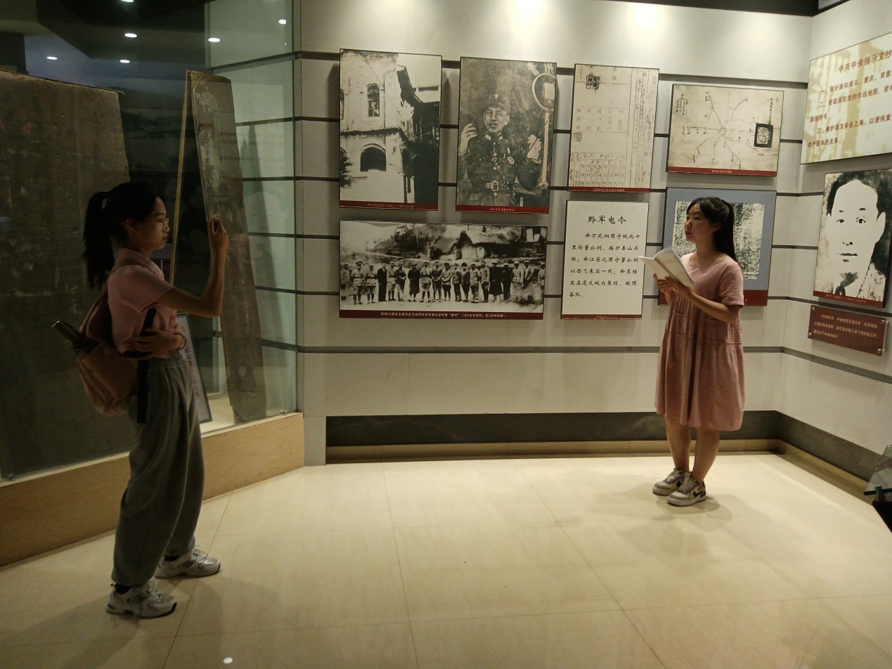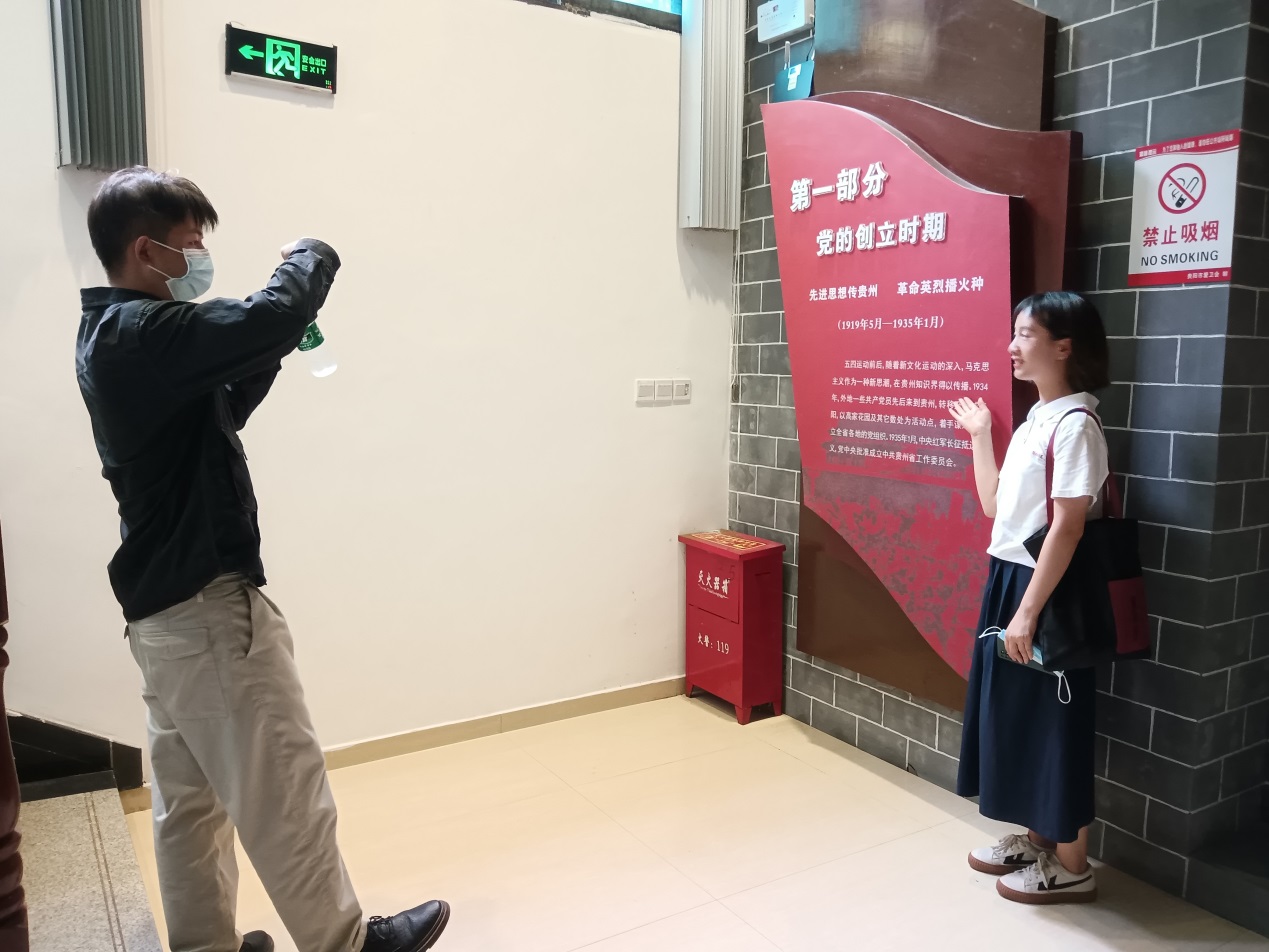 接着,大家来到位于文笔街的中共贵州省工委旧址。1935年,党中央批准建立中共贵州省工作委员会,它是党中央在长征期间批准建立的唯一的一个省级地方党组织。中共贵州省工委建立后,遵循党中央的指示,在配合和支持红军转战贵州、全省发展党员、建立党的组织、开展兵运工作、组织游击武装的过程中,发动人民群众与帝国主义、国民党反动派统治进行长期的革命斗争,为中国新民主主义革命的胜利和贵州的解放,建立了不可磨灭的功勋。在省工委,同学们参观了党史展览,精心选取了部分内容进行诵读和视频拍摄。