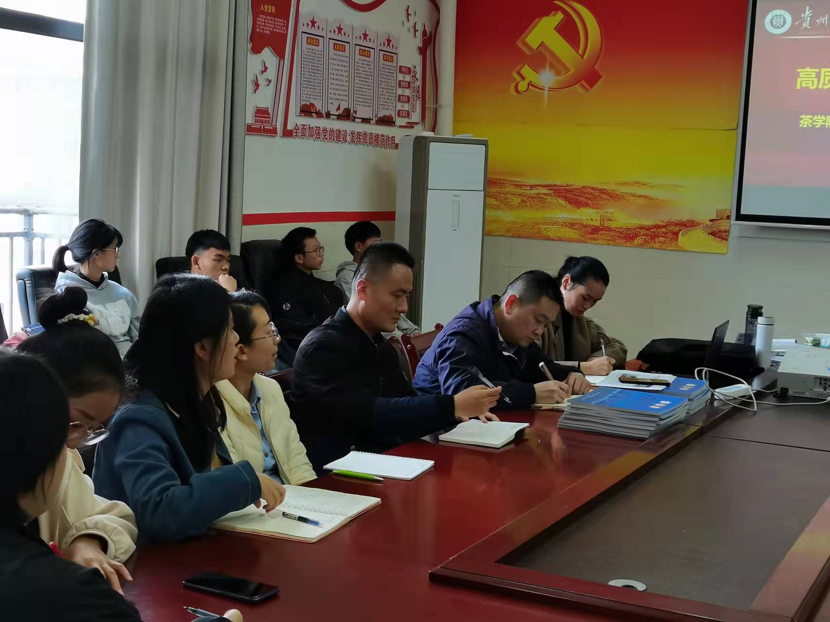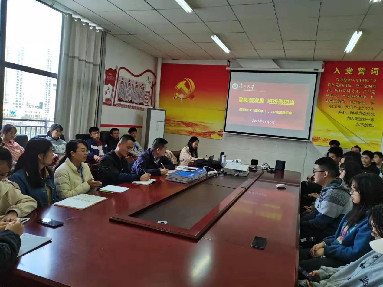 2021年11月5日,覃昆同志参加茶学201、202班 “高质量发展 班级勇担当”主题联合班会,听取班主任、员工干部、普通同学的意见和建议,现场为同学们解答学习和工作生活方面的问题。