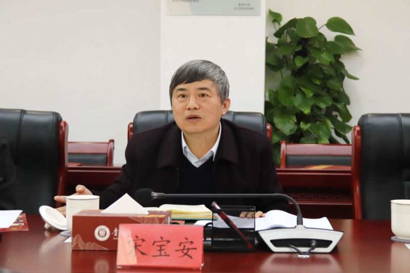 宋宝安讲话。他指出,学校各相关部门应设置工作专班,将校园茶文化深入到员工群体之中,让员工走近茶、了解茶,营造浓厚的茶文化氛围;各学院应围绕茶文化积极参与创新创作,以学研融合促产业化发展,鼓励员工创新开发相关茶产品,多学科交叉打造智慧茶园,服务地方产业升级,为乡村振兴贡献贵大智慧力量。