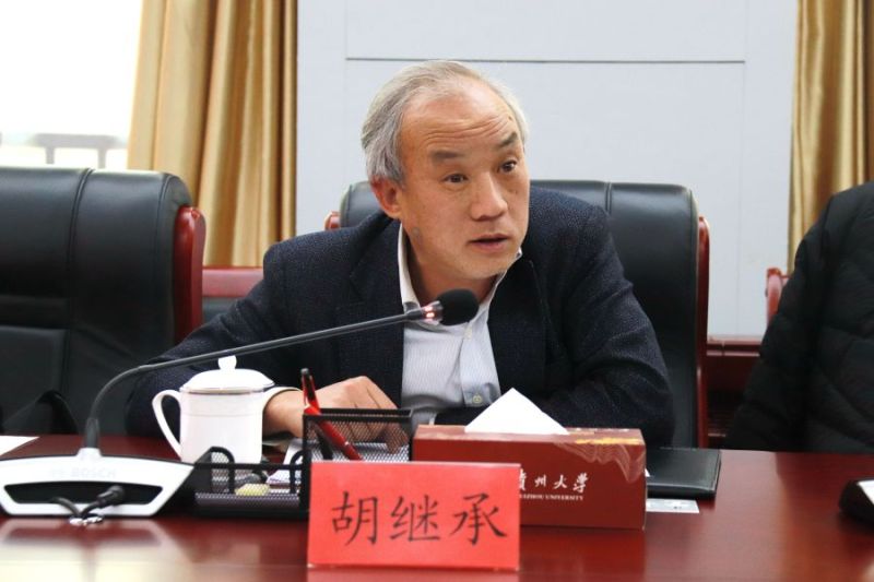 胡继承讲话。他指出,贵大师生要发散思维,以茶元素为主题,积极创作茶文化文艺作品,依托校园特色,打造特色茶文化环境;学校要鼓励员工创新开发茶产品并进行产业转化,加大对茶产品产业化的支持力度,为贵州省茶产业健康、良性和高质量发展作出贡献。