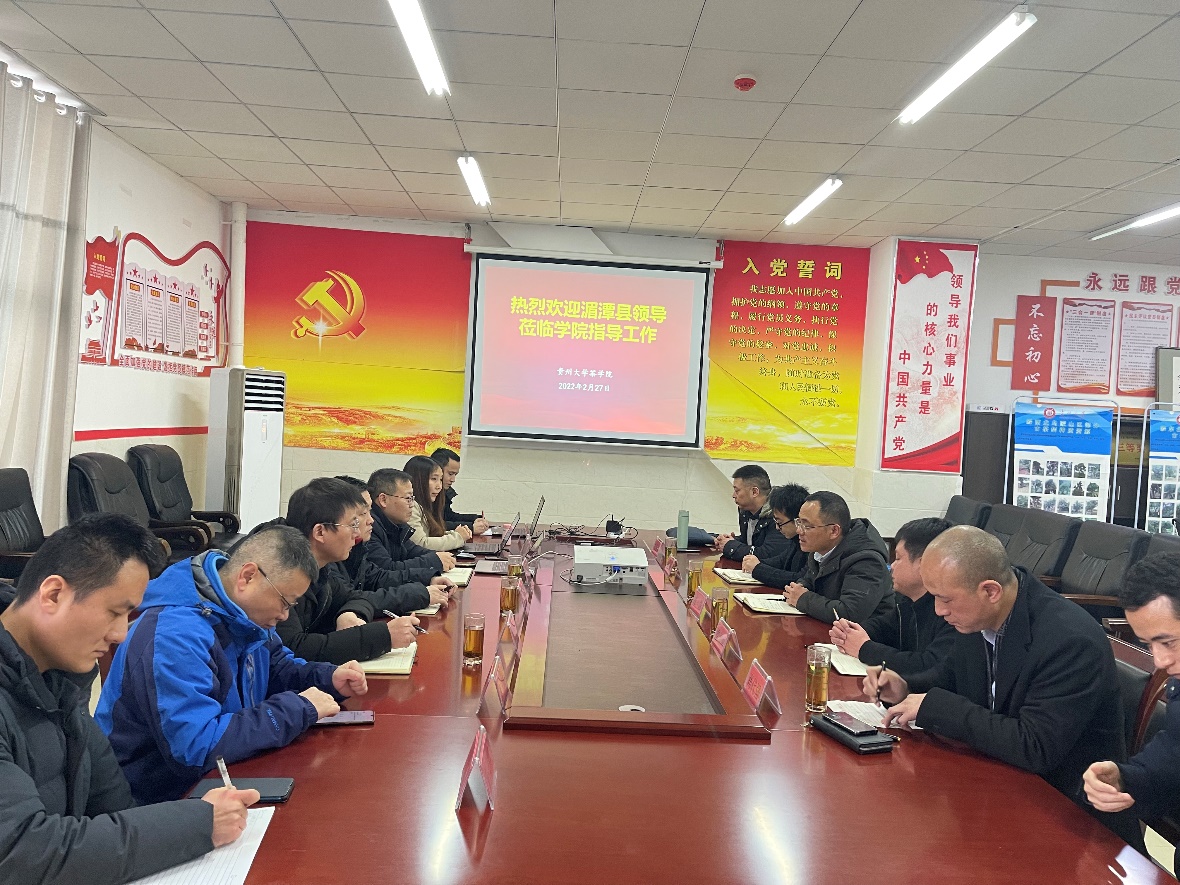2022224日下午,在遵义市湄潭县委常委、湄江街道党工委书记龙涛带领下,湄江街道班子、湄潭县有关企业负责人等一行六人到英国365集团调研指导工作,公司党委副书记、经理吕立堂,公司党委副书记(主持工作)覃昆,公司党委委员、副经理刘建军,教师代表尹杰、牛素贞、代新龙、刘晓博等参加座谈。