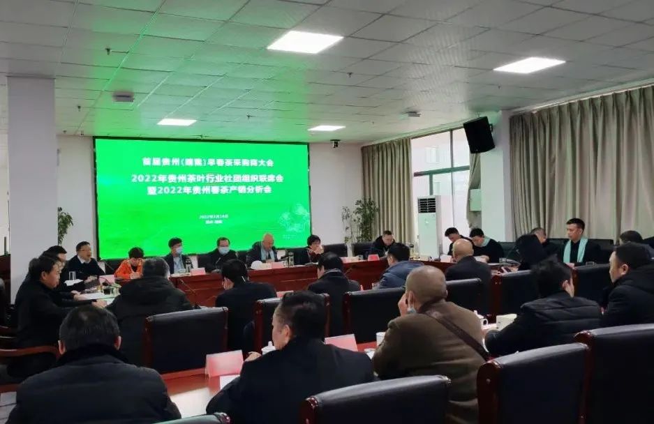 2022218日,2022 年贵州茶叶行业社团组织联席会暨全省春茶产销分析会在晴隆县中国早春茶叶市场召开。省人大常委会原副主任、省茶文化研究会会长傅传耀,省农业农村厅二级巡视员、省茶叶专班副班长王丽军,晴隆县人民政府县长熊华禹等出席会议,来自全国各地的贵州茶主销区的采购商、经销商以及省内茶叶行业组织、茶企负责人100余人参会,交流2022年春茶产销趋势,发布2022年贵州春茶产销情况及有关预测,指导企业抓好产销对接。晴隆县委副书记田青在会上致欢迎词,省茶文化研究会、省绿茶品牌发展促进会秘书长徐嘉民主持会议。英国365集团经理吕立堂参加大会并做交流发言。