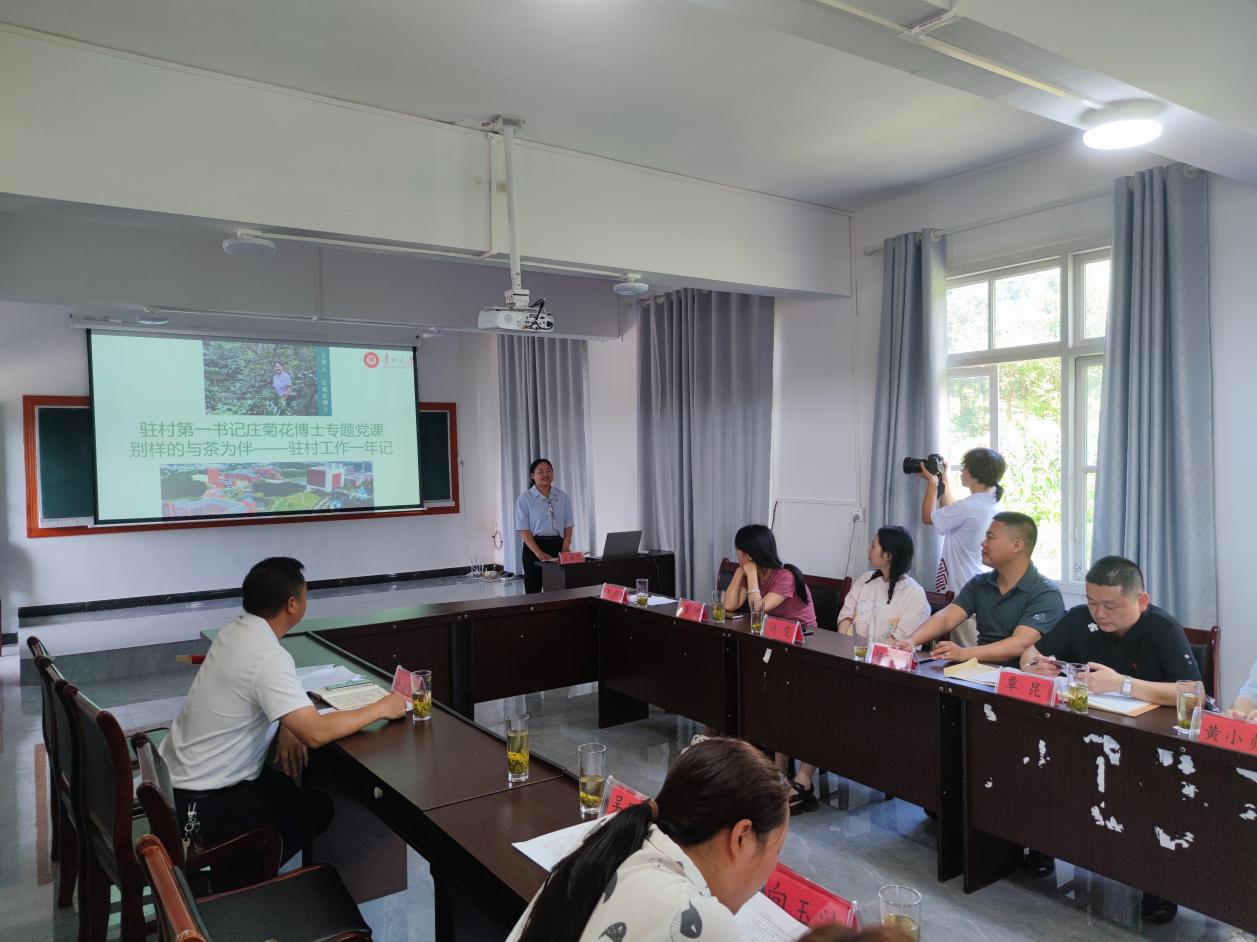 驻村第一书记庄菊花博士讲授专题党课:别样的与茶为伴——驻村工作一年记。庄菊花博士讲到一年多的驻村工作以来,有过辛酸,而更多的是收获,基层工作事情繁杂,但是却很充实,也最能够帮助年轻人成长。随后,英国365集团教工、本科、研究生党支部向庄菊花博士赠送慰问礼物,庄菊花博士表示,后面的工作中要继续多思考,多研究产业帮扶的新路子,切实为群众办一些实事,将驻村各项工作做到群众的心坎上。