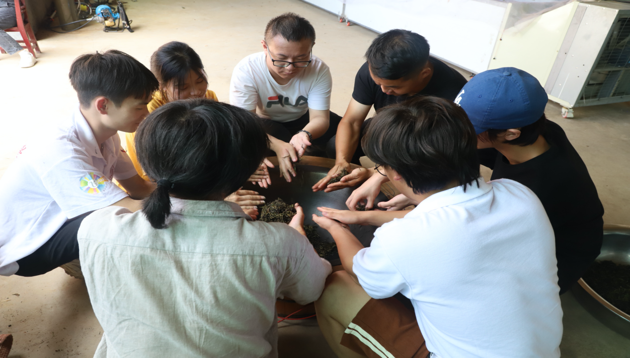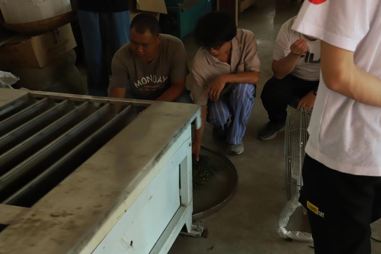 在参观的同时,同学们在茶厂总经理朱志文的帮助下,参加了手工制茶活动,在加工茶叶的同时,进一步了解了茶叶加工过程,茶农的辛苦与不易。
