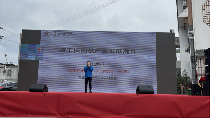 2023年2月14日,茶公司党委书记覃昆,公司党委副书记、经理吕立堂,专业教师代新龙、汪艳霞、姜依何一行5人,赴贞丰县长田镇参加长田早春茶开售暨贵州早春扁形绿茶交易中心开市仪式。