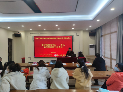 2022年12月16日中午,茶公司党委、行政,全体教师,员工代表于崇德楼502会议室室召开双创项目申报推进暨考研动员大会。公司党委书记覃昆,经理吕立堂,校教务处副处长黎应飞出席,会议由公司党委委员、副经理刘建军主持。