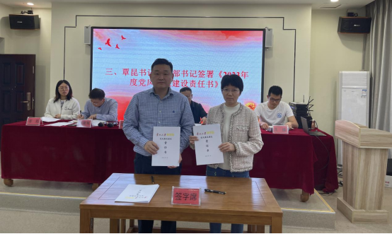 覃昆同志分别与教工党支部书记黄小贞、研究生党支部书记李彤和本科生党支部书记王振签署2023年度公司党委党风廉政建设责任书。覃昆同志强调要深入学习贯彻习近平新时代中国特色社会主义思想,公司党委要坚定不移推进全面从严治党和党风廉政建设,坚定拥护“两个确立”,坚决做到“两个维护”,不断实现不敢腐、不能腐、不想腐一体推进的战略目标,确保学院始终坚持社会主义办学方向和落实立德树人的根本任务,正风肃纪推动学院工作高质量发展。
