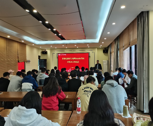 在博学计划考研经验分享阶段,副经理赵懿琛详细介绍公司研究生招生专业,并针对学术型和专业型研究生政策做了详细解读,鼓励同学们积极报考;研究生一年级优秀研究生代表:石国力、陶静、潘琪瑞、令狐克漫四位同学从考研复习重点、方法,使用的参考教材等方面分享了自己考研经验,让同学们收获颇丰。